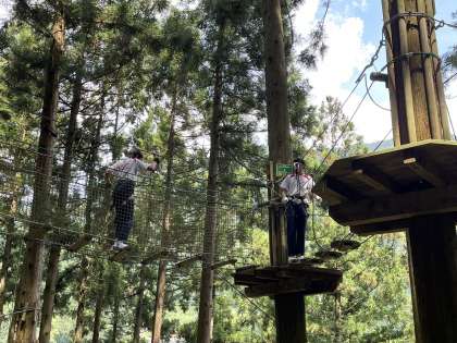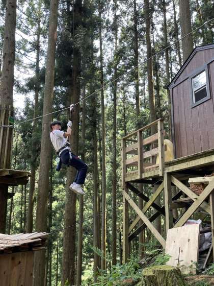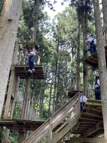 写真は、フォレストアドベンチャー班の活動の様子です。
