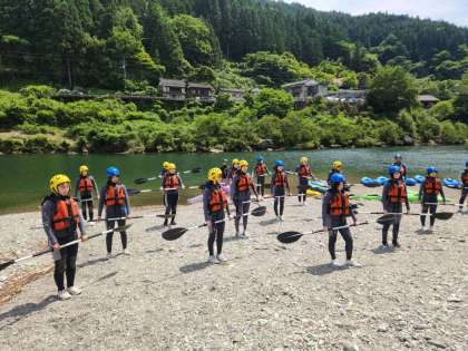 カヌー&サップ班は、インストラクターさんから諸注意を受けているようです。