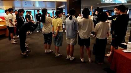 レクリエーション係が夜レク開始直前の打ち合わせ中です。かなり気合が入っているようです。