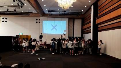 続いて○?クイズ。正解が示されるたび、歓喜の声と拍手の渦が巻きおこっています。
