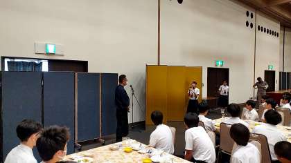 退館式の様子です。ホテルスタッフの皆さま、お世話になりました。