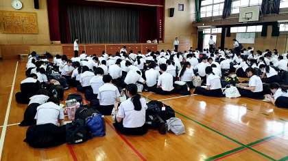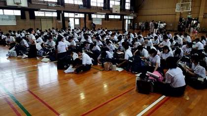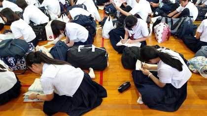 帰校式に先立ち、最終日を振り返り、しおりにまとめている様子です。