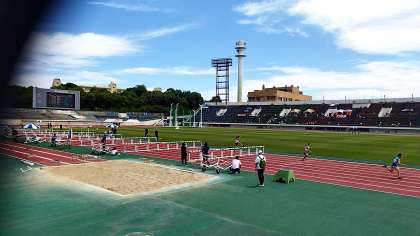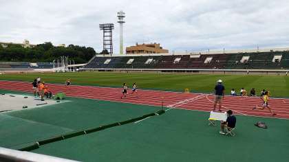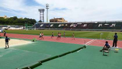 晴れわたる青空のもと、万博記念陸上競技場において、第4回記録会が開催されました。応援を含む参加した8名の部員たちは、皆心地よい汗をかいていました。