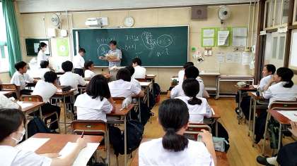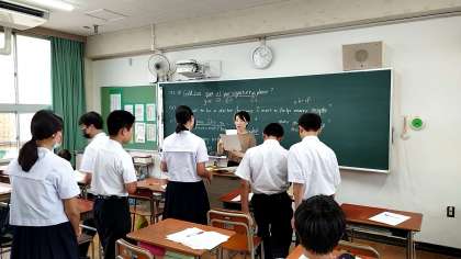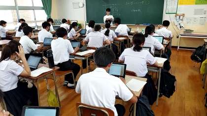 各学年とも、期末テストの答案が返却されました。テストを終えた振り返りを、学習者用端末を用いて回答しているクラスもありました。