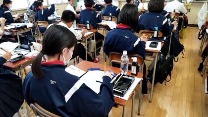 筆の持ち方や運び方など、基本的な動作について説明を受けた後、練習に取り組みました。