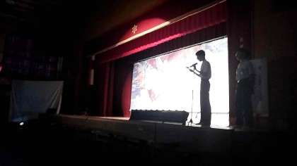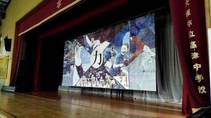 2年生は、パリ五輪にちなんだモザイクアートを披露しました。スポットライトに照らされた作品を見た観衆から歓声がまき起こりました。