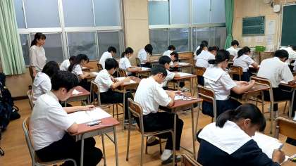 本日は、国語・社会・数学の各教科で中間テストを実施します。