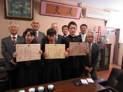 その中から3名が『天王寺税務署長賞』『近畿税理士会天王寺支部長賞』『天王寺近畿納税貯蓄組合総連合会長賞』を受賞し、賞状と記念品が贈られました。また、学校に『全国納税貯蓄組合連合会感謝状』が贈られました。