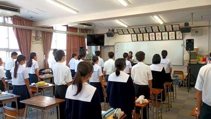 体育大会閉会式で斉唱する「生徒会歌」を練習しています。