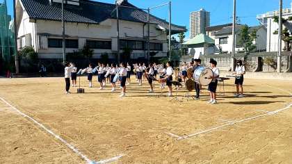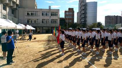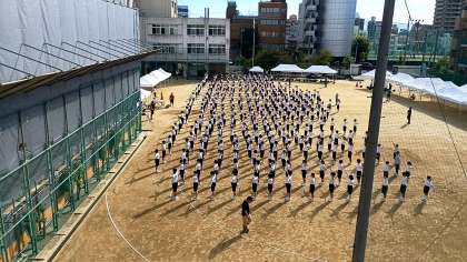 吹奏楽部の伴奏のもと校歌斉唱、ラジオ体操と続きます。