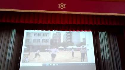 校舎壁面工事中につき、保護者の皆さまの観覧スペースに限りがあるなか、パブリックビューイングを導入することにいたしました。