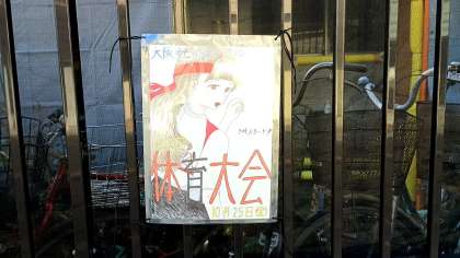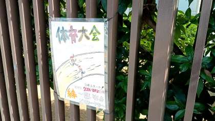 校舎壁面に生徒が作成したポスターが掲示されています。体育大会は、10月25日(金曜日)に開催予定です。