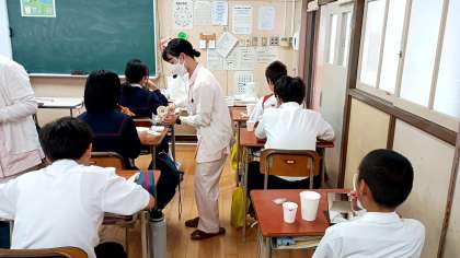 大阪歯科衛生専門学校の教員・学生の皆さまを講師としてお招きし、クラスごとに歯科保健指導を実施しました。