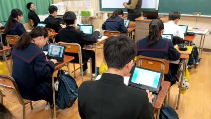 パソコンを使い、演習問題の解答に取り組んでいます。タイピングをしっかりマスターしましょう。