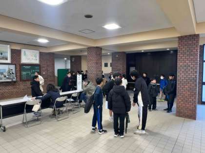 校区小学生の部活動体験「ベアーズ」がありました。玄関ピロティには体験に参加する小学生の皆さんが次々にやってきました。今日はどんな体験ができるか楽しみですね。