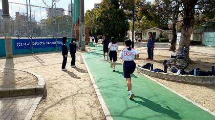 真田山公園杯1500m走3年3組・4組です。周回路を3周します。
