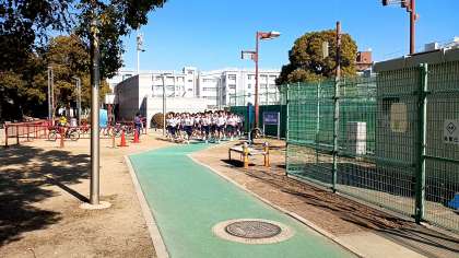 引き続いて、真田山公園杯1500m走2年3組・4組です。終了後学校に戻り、体育委員が講評しました。