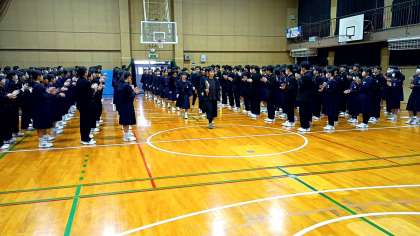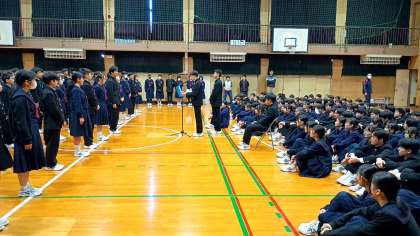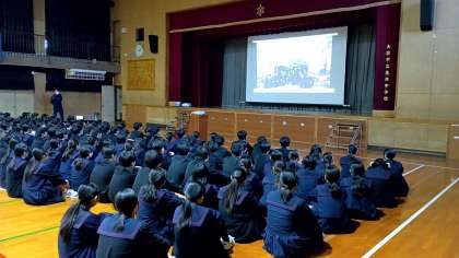 生徒会主催の3年生を送る会が行われました。1・2年生各クラスならびに部活動部員からビデオメッセージと歌が送られました。3年生代表生徒がお礼の言葉を述べ、後輩に後を託しました。
