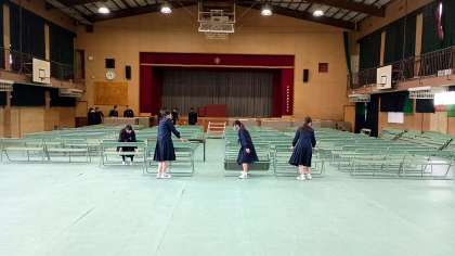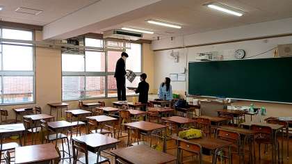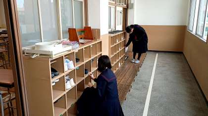 校内では、別日に試験を終えた3年生が中心となって、教室の片づけや卒業式予行会場の準備にあたってくれているようです。
