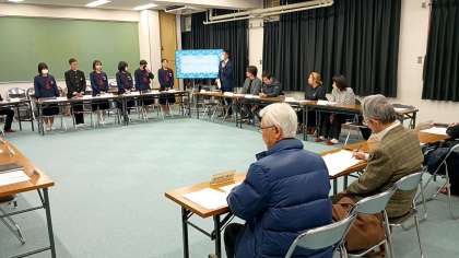 生徒会役員が、学校生活の様子や天王寺区制100周年に向けた取組について、地域の皆さまに報告しました。