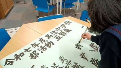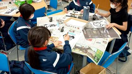 書道部は静謐な環境のもと、文字や絵を筆でしたためていました。
