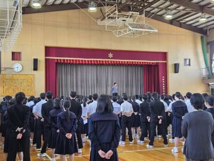 生徒指導部長の先生からは、月曜日の朝に全校集会を開く意義についてお話がありました。