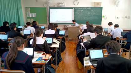 自然災害に対する備えに関する単元です。ピクトグラム(標識)の意味を調べながら、パワーポイント資料にまとめている様子です。