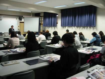 1校約20分で,1日12校。2日間で24校の私立高校の先生方に高校のお話をしていただきました。