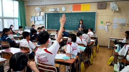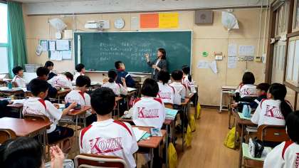 バリアフリーの社会をめざし、誰もが楽しく参加できるスポーツゲームについて考えました。子どもたちは、斬新なアイデアを次々と発表していました。