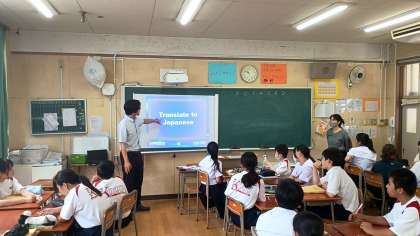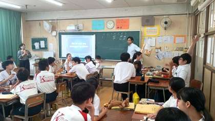 教科担当教員とC-NETによるティー厶ティーチング授業です。