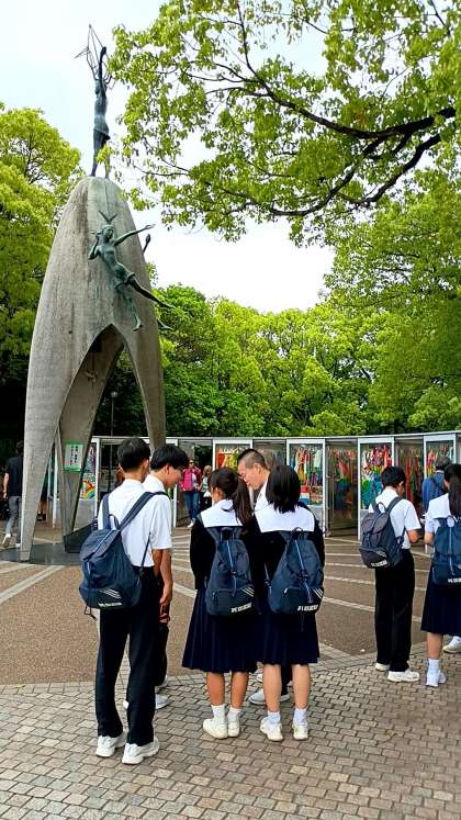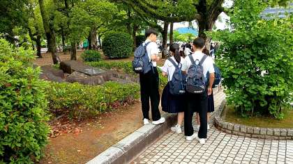 資料館見学を終え、班ごとに平和記念公園内の碑めぐりです。