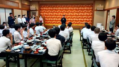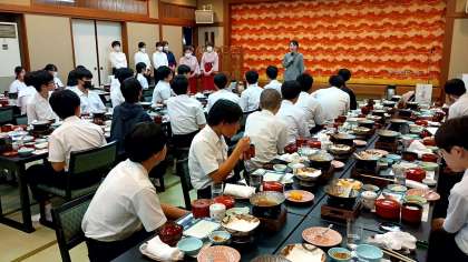 入浴・就寝に向けた諸注意や避難経路に関する補足説明の後、係り生徒の号令で「ごちそうさま」の挨拶をしました。