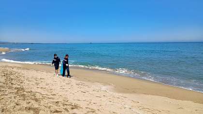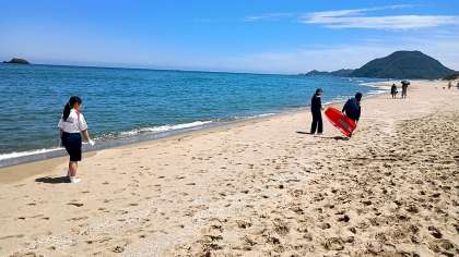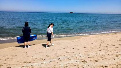 滑走を終えるたびに、海辺を歩いてスタート地点に戻ります。