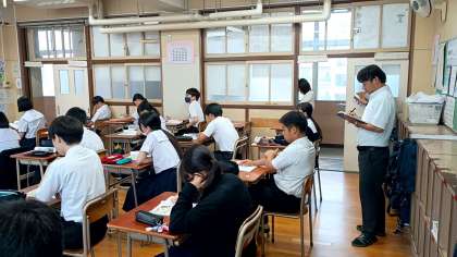 「卒業文集最後の二行」という作品が本時の教材です。いじめの対象となった小学生時代の同級生の卒業文集を読み返し、30年以上経過してなお悔いる主人公の心の動きを読み取りながら、公正や社会正義といった道徳的価値の内面化をめざし、授業が展開されました。
