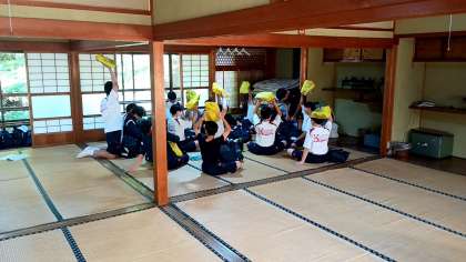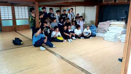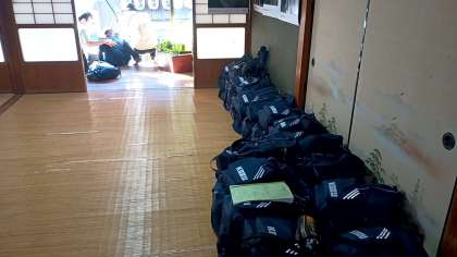 荷物を整理整頓したうえで、記念撮影です。まもなく夕食会場に向かいます。