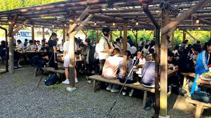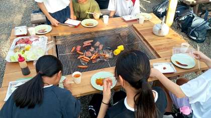 ワイワイガヤガヤ楽しい夕食タイムです。メニューはバーべキューです。