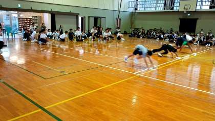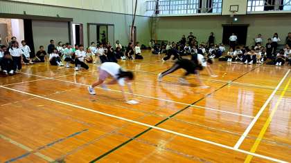 まずは、クラス対抗雑巾リレーで幕開けです。