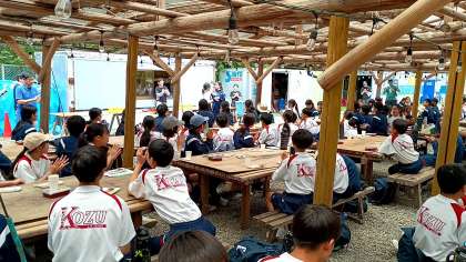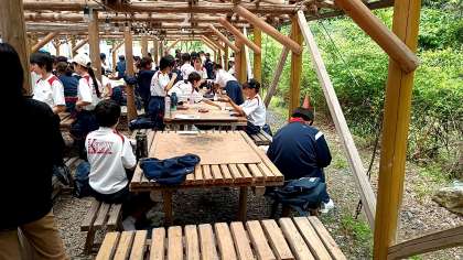「ごちそうさま」のあいさつの後、テーブルごとに後かたづけをしました。