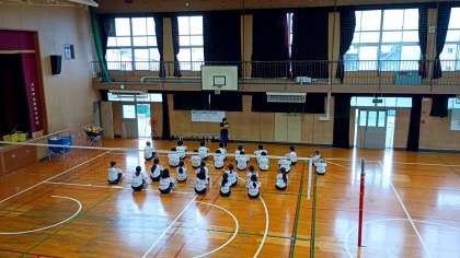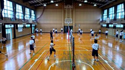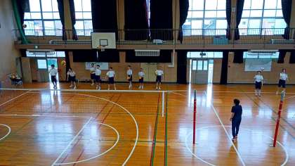 レシーブやトスを用いてグループでパスまわしに取り組んだ後、アンダーサーブの練習をしました。