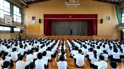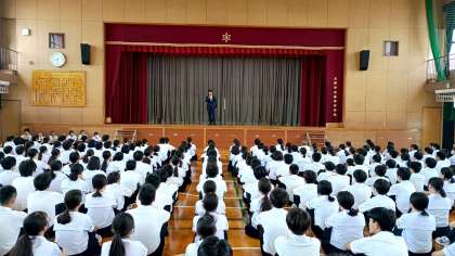 次に教頭先生から、ある卒業生が努力を重ねたエピソードを通して、目標に向けて初志を貫くことの大切さについてお話しがありました。