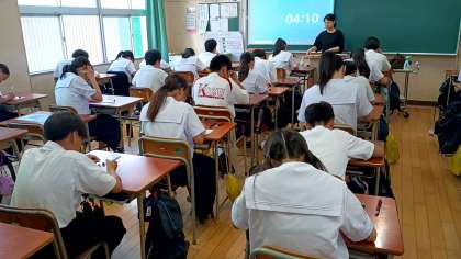 文法の時間です。指示する語句、接続する語句について学んだ後、問題演習に取り組みました。
