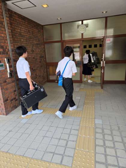 味原小学校での部活動紹介を終えて、各クラブ部員の皆さんが帰校しました。