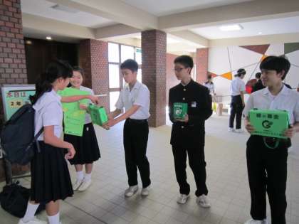 5月10日(火)から12日(木)の3日間、朝の登校時にピロティにて生徒会が「緑の羽根募金」を行いました。