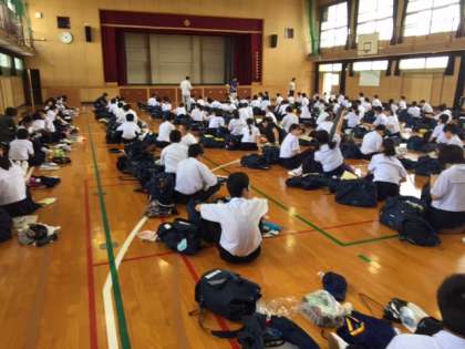 明日から1年の一泊移住です。本日午後、体育館で荷物の確認など事前指導が行われています。楽しい一泊移住になることを期待しています。