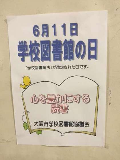 図書室の前にこんなポスターが貼ってあります。6月11日は土曜日で図書室は開いてませんが、家で本を読みましょう。