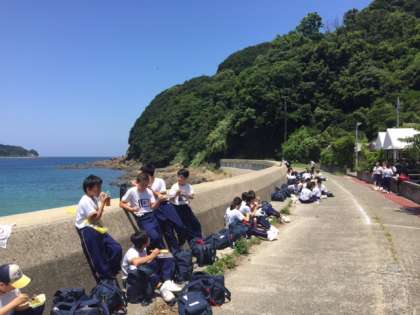 昼の弁当タイム。海に出る前に腹ごしらえです。みんな元気です。