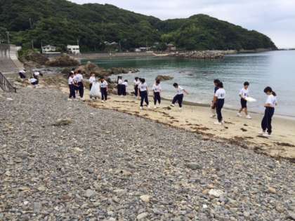 清掃活動です。部屋の掃除もしますが、海岸も来る前よりきれいにが基本です。