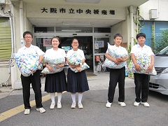 生徒会で集まったエコキャップを大阪市立中央授産場に届けに行きました。