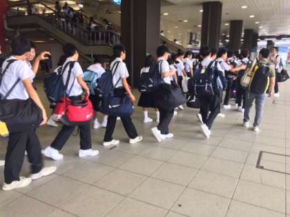 出発前です。8時14分発広島行き。見送りの保護者の方々もいらっしゃいます。