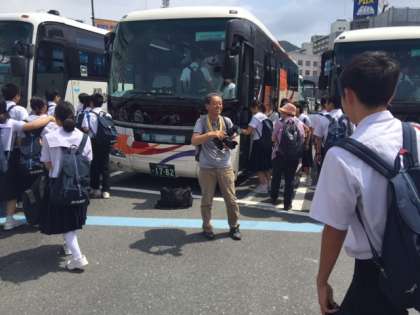 広島駅に到着しました。バスで平和公園に移動します。いい天気です。